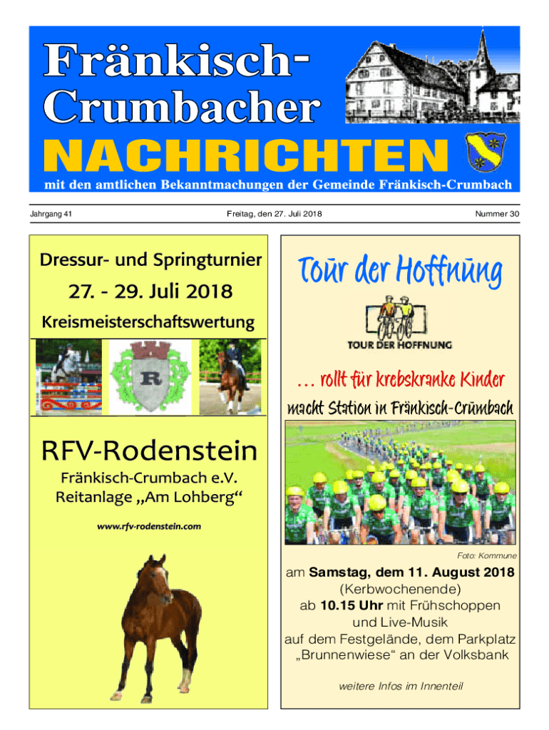 Charging 41Freitag, den 27. July 2018Nummer 30Tour her Hoffman roll for krebskranke Kinder yacht Station in FrnkischCrumbachFoto: Commune Sam stag, them 11. August 2018 (Kerbwochenende) ab 10.15 UHF