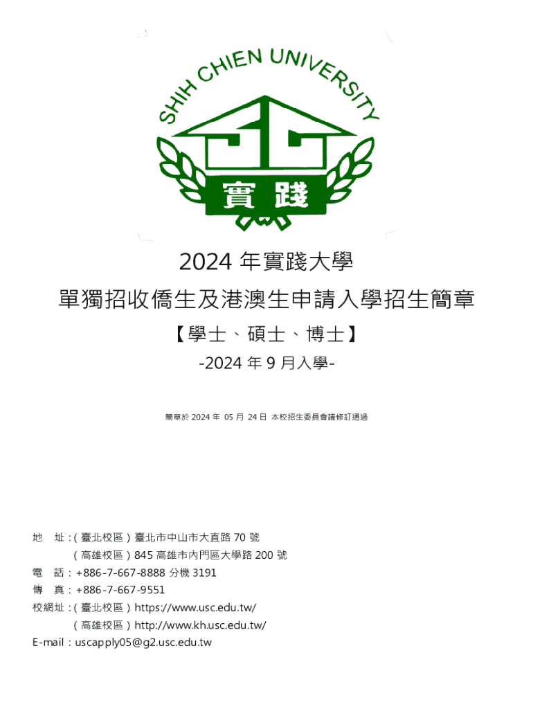 2024 2024 9 2024 05 24 70 845 200 +88676678888 3191+88676679551https://www.usc.edu.tw/ http://www.kh.usc.edu.tw/ Emailuscapply05@g2