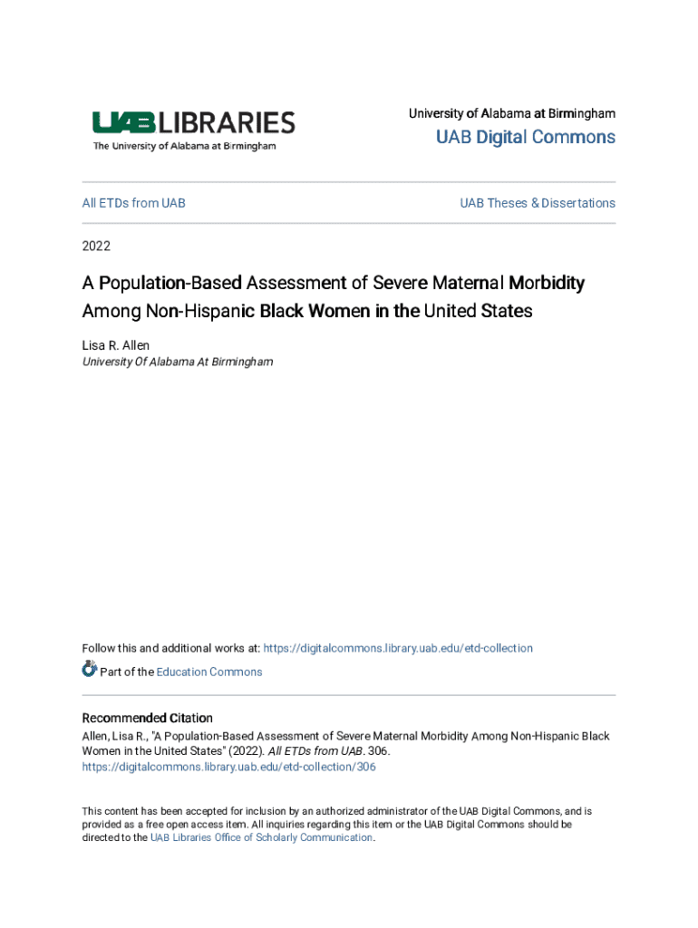 University of Alabama at Birmingham UAB Digital Commonly ETD's from UAB UAB Theses & Dissertations2022A PopulationBased Assessment of Severe Maternal Morbidity