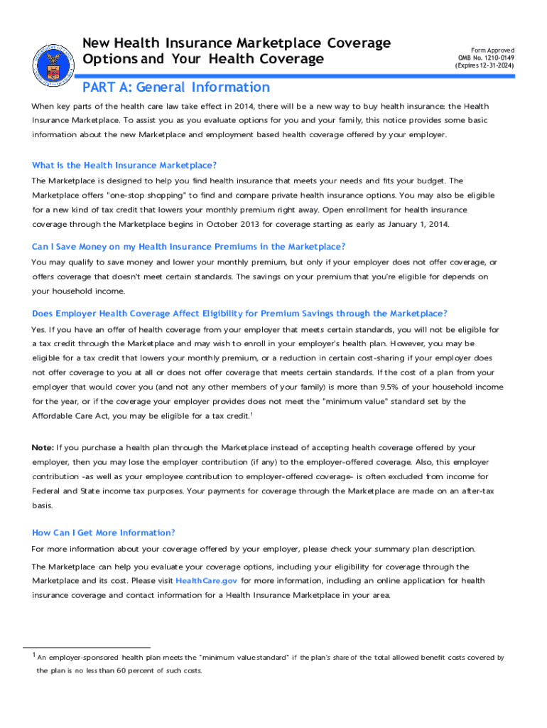 New Health Insurance Marketplace Coverage Options and Your Health CoverageForm Approved OMB No. 12100149 (Expires 12312024)PART A: General Information When key parts of the health care law take effect