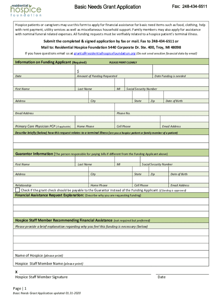 Fax: 2484346511Basic Needs Grant ApplicationHospice patients or caregivers may use this form to apply for financial assistance for basic need items such as food, clothing, help