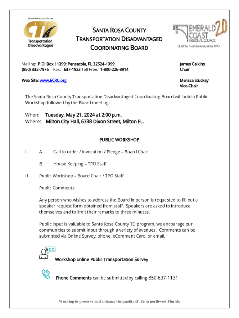 SANTA ROSA COUNTY TRANSPORTATION DISADVANTAGED COORDINATING BOARDStaff to Florida Alabama Compiling: P.O. Box 11399; Pensacola, FL 325241399 (850) 3327976 Fax: 6371923 Toll Free: 18002268914James