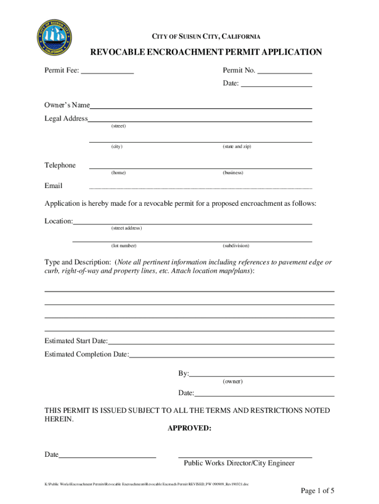 CITY OF SUSAN CITY, CALIFORNIAREVOCABLE ENCROACHMENT PERMIT APPLICATION