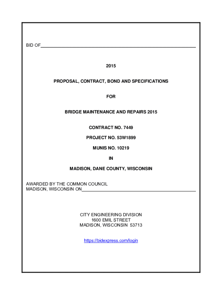 BID OF2015PROPOSAL, CONTRACT, BOND AND SPECIFICATIONSFORBRIDGE MAINTENANCE AND REPAIRS 2015CONTRACT NO. 7449