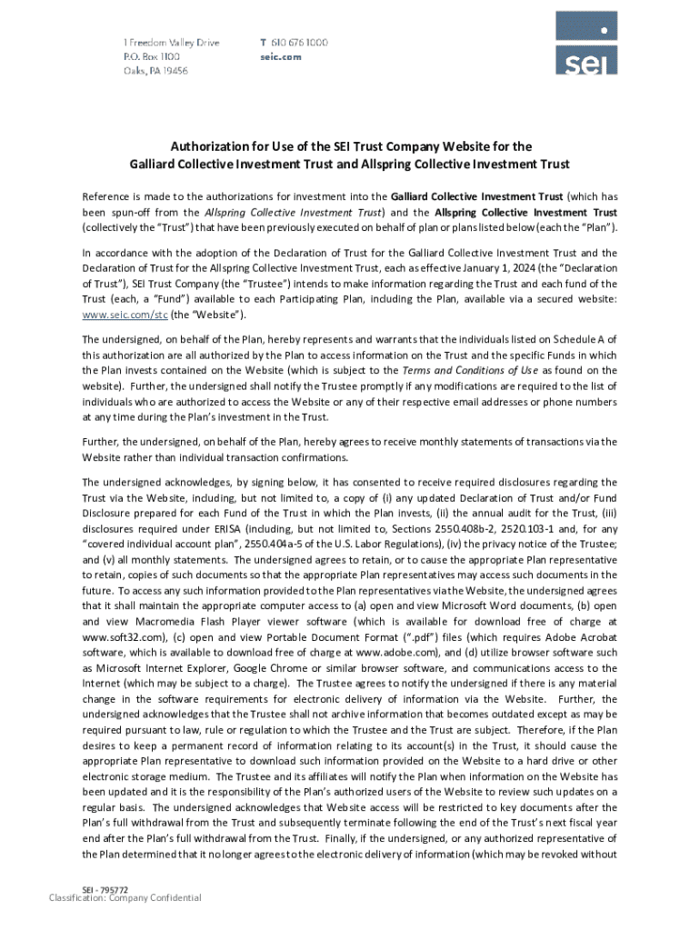 Get the free Authorization for Use of the SEI Trust Company Website for ...