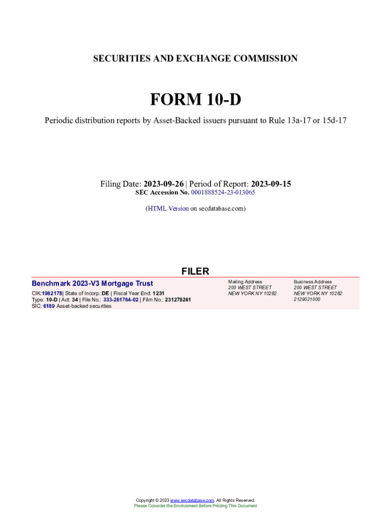 Get the free Benchmark 2023-V3 Mortgage Trust Form 10-D Filed 2023-09-26. Accession Number