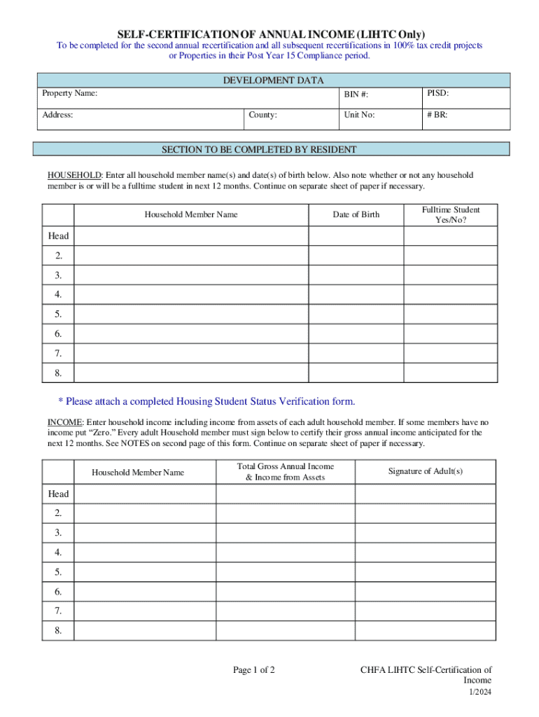 RECERTIFICATION OF ANNUAL INCOME (LIH TC Only) To be completed for the second annual recertification and all subsequent recertifications in 100% tax credit projects or Properties in their Post Year