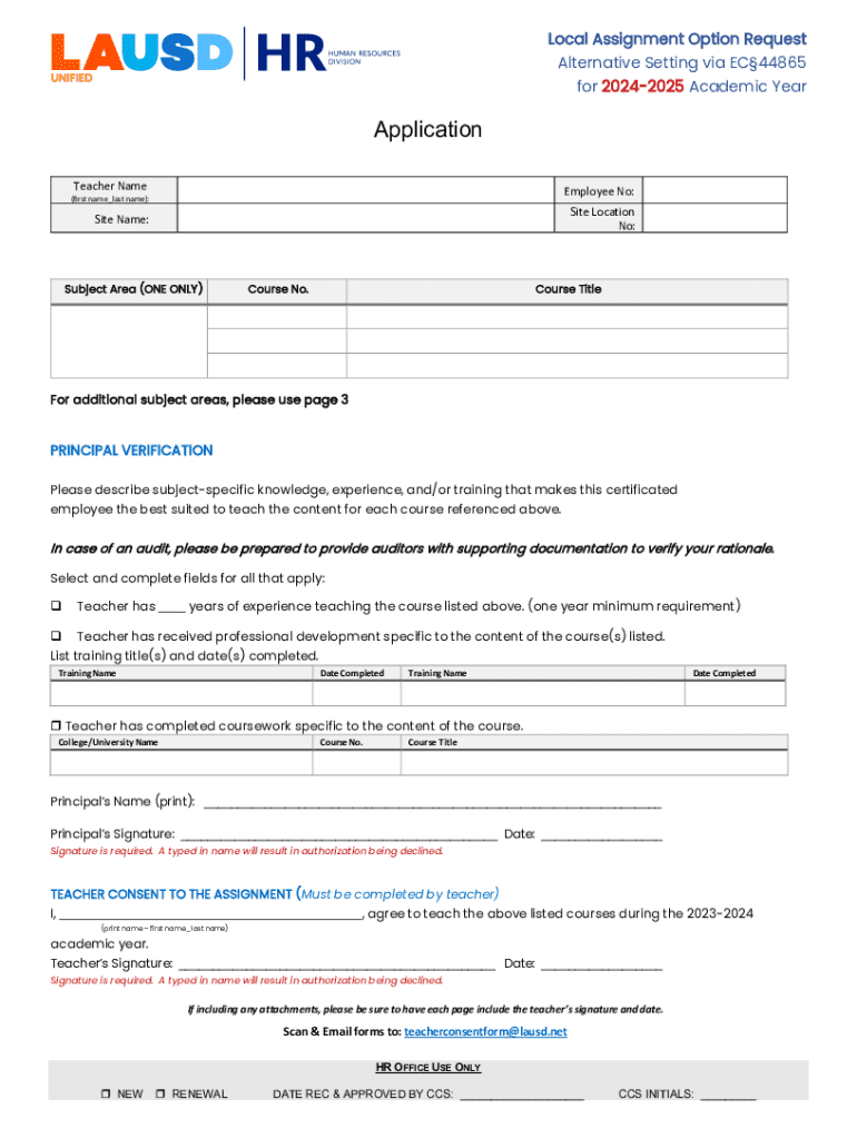 Get the free Local Assignment Option Request for Alternative Setting ...