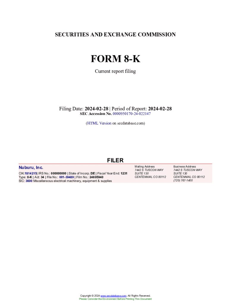 Email, fax, or share your nuburu inc form 8-k form via URL. You can also download, print, or export forms to your preferred cloud storage service.