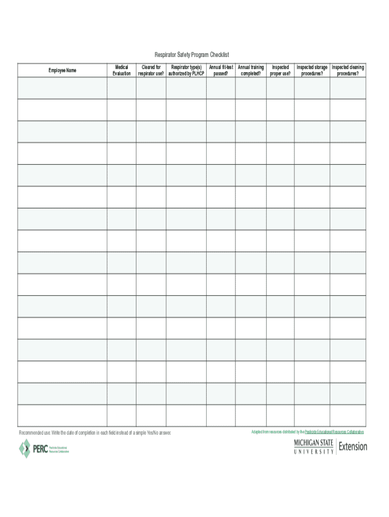 Respirator Safety Program Checklist