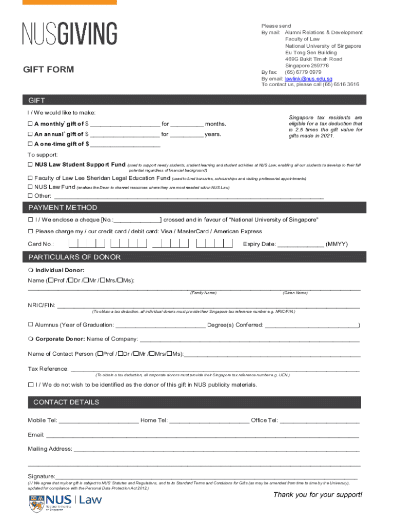 Please send By mail: Alumni Relations & Development Faculty of Law National University of Singapore Eu Tong Sen Building 469G Bukit Timah Road Singapore 259776 By fax: (65) 6779 0979 By email: lawlink@nus.edu.sg