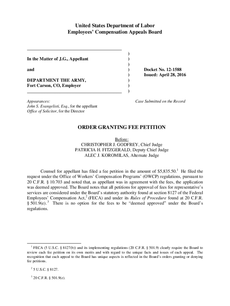 Attorneys or representatives who have incurred fees during a legal proceeding related to employees' compensation cases are required to file ECAB fee petition orders.