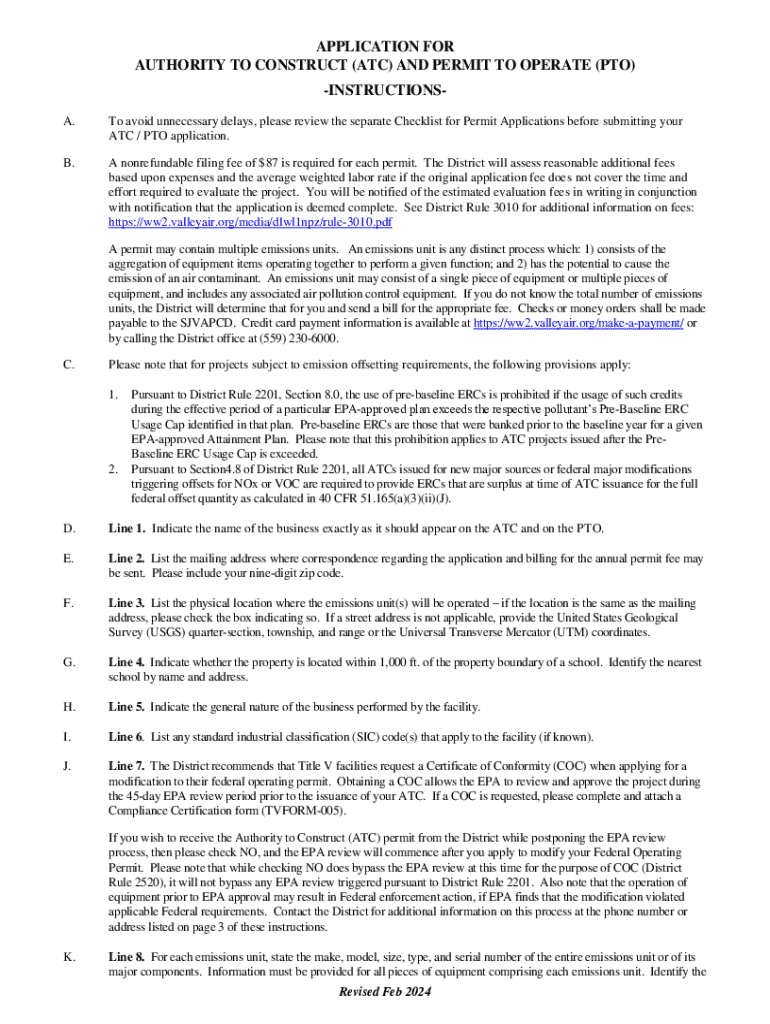 APPLICATION FOR AUTHORITY TO CONSTRUCT (ATC) AND PERMIT Operating (PTO) INSTRUCTIONS. To avoid unnecessary delays, please review the separate Checklist for Permit Applications before submitting your