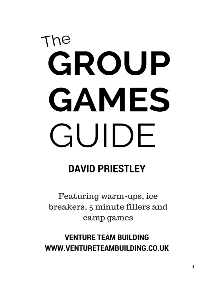2Group Games for Fun Second EditionDavid Priestley www.ventureteambuilding.co.ukProduced for: Venture Team BuildingEmail: web@ventureteambuilding.co.uk Website: www.ventureteambuilding.co.uk First