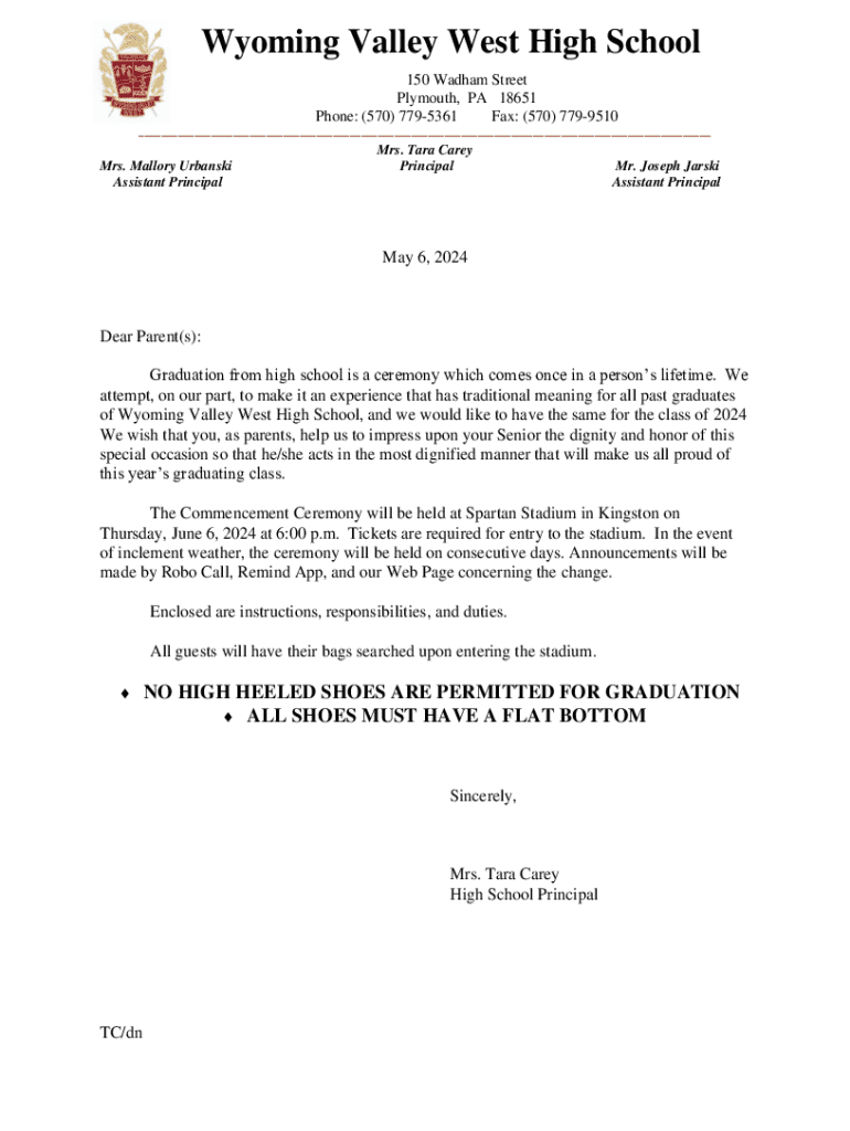 Wyoming Valley West High School 150 Wadham Street Plymouth, PA 18651 Phone: (570) 7795361 Fax: (570) 7799510 ___Mrs. Mallory Urbanski Assistant PrincipalMrs. Tara Carey PrincipalMr. Joseph Jarski