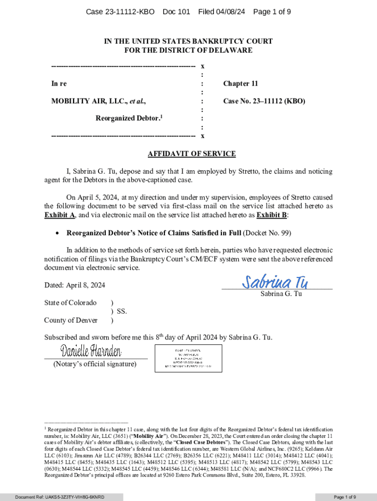 Get the free AOS re 2024.04.05 Notice of Claims Satisfaction (DN 99)