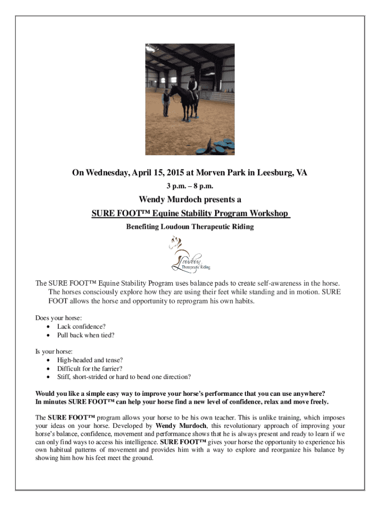 Get the free Wendy Murdoch presents a SURE FOOT Equine Stability ...