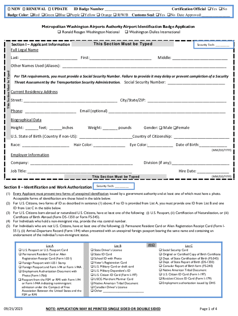Get the free AIRPORT IDENTIFICATION BADGE APPLICATION Section ...