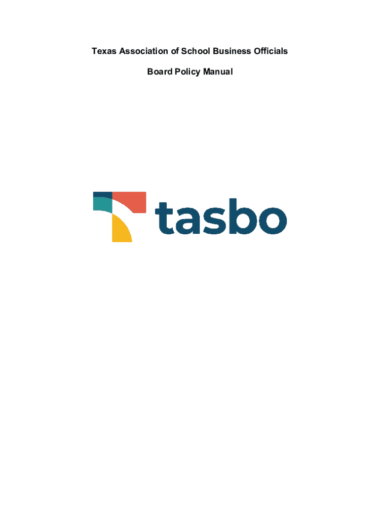 Texas Association of School Business Officials Board Policy ManualBASIC FOUNDATION, ORGANIZATION AND GOVERNANCE 1000 .................................... 4 Restated Articles of Incorporation 1100