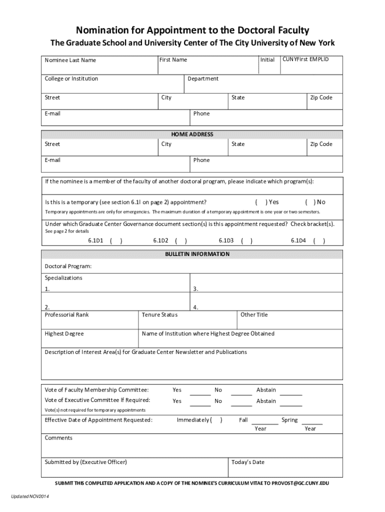 Get the free Nomination and Appointment to Graduate Faculty ...
