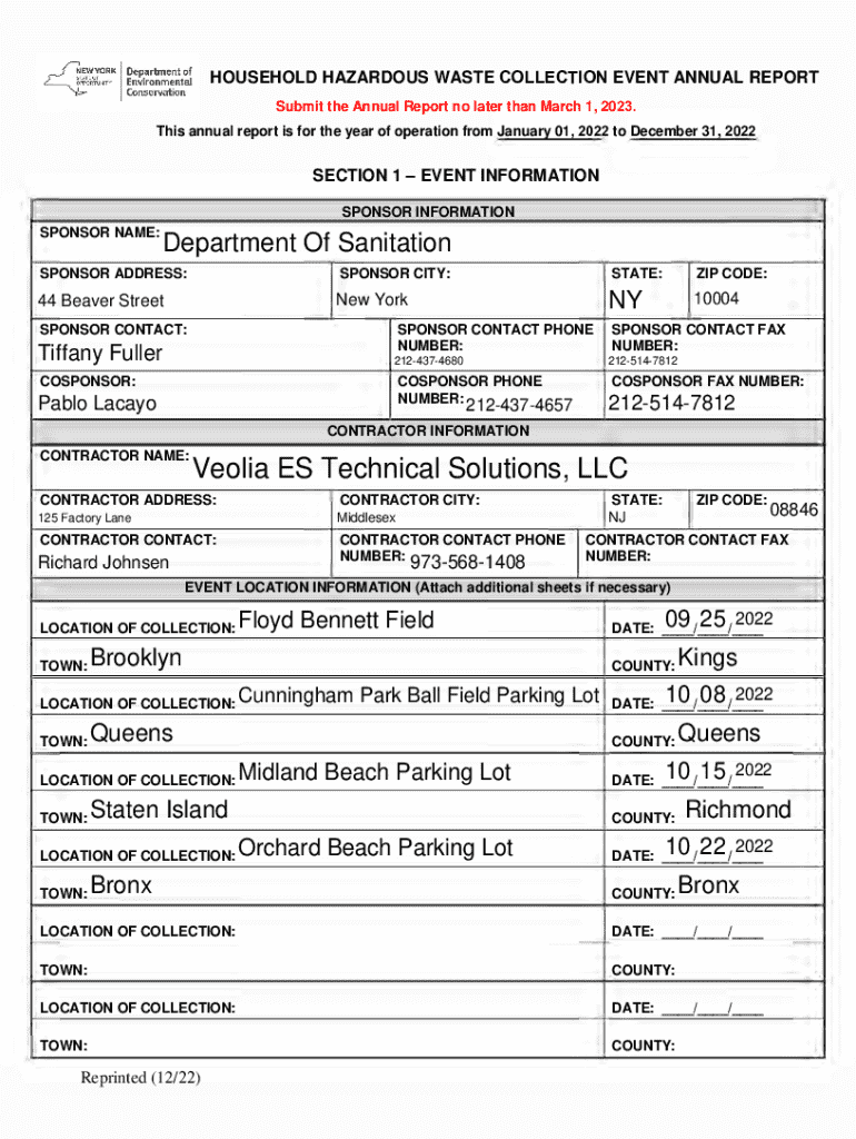 F!, .a, : I TL::l HOUSEHOLD HAZARDOUS WASTE COLLECTION EVENT ANNUAL REPORTConservationSubmit the Annual Report no later than March 1, 2023.