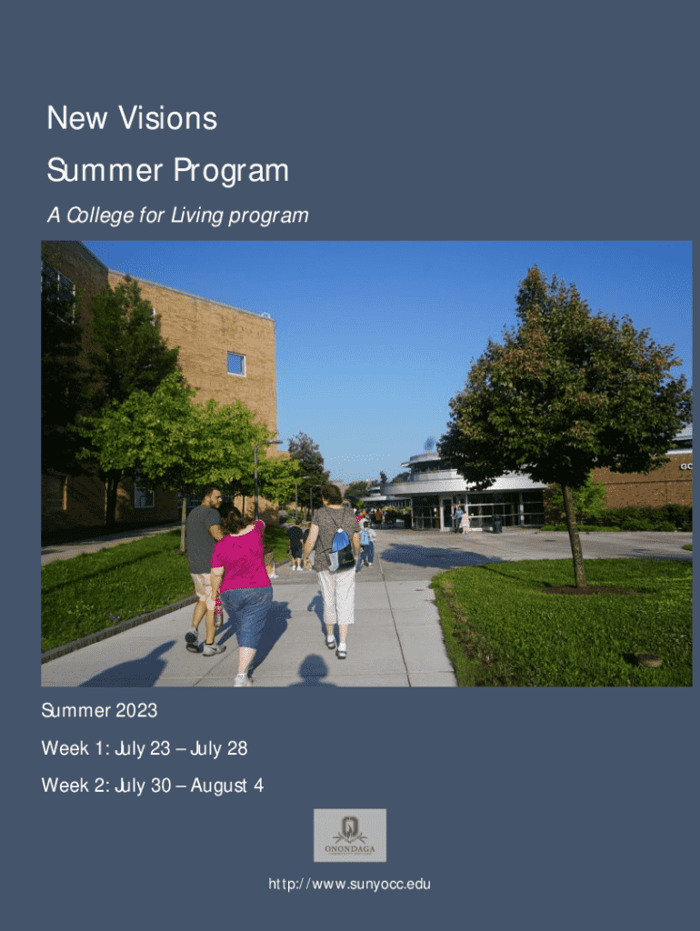 New Visions Summer Program A College for Living program Summer 2023 Week 1: July 23 July 28 Week 2: July 30 August 4http://www.sunyocc.eduAbout the New Visions Program New Visions is a weeklong full