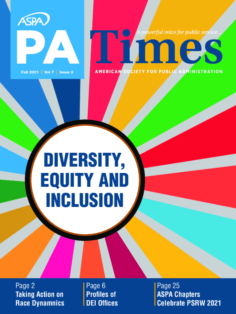 Fall 2021 | Vol 7 | Issue 2DIVERSITY, EQUITY AND INCLUSION Page 2 Taking Action on Race DynamnicsPage 6 Profiles of DEI Offices Page 25 ASPA Chapters Celebrate PSR 20212Taking Action on Race Dynamics