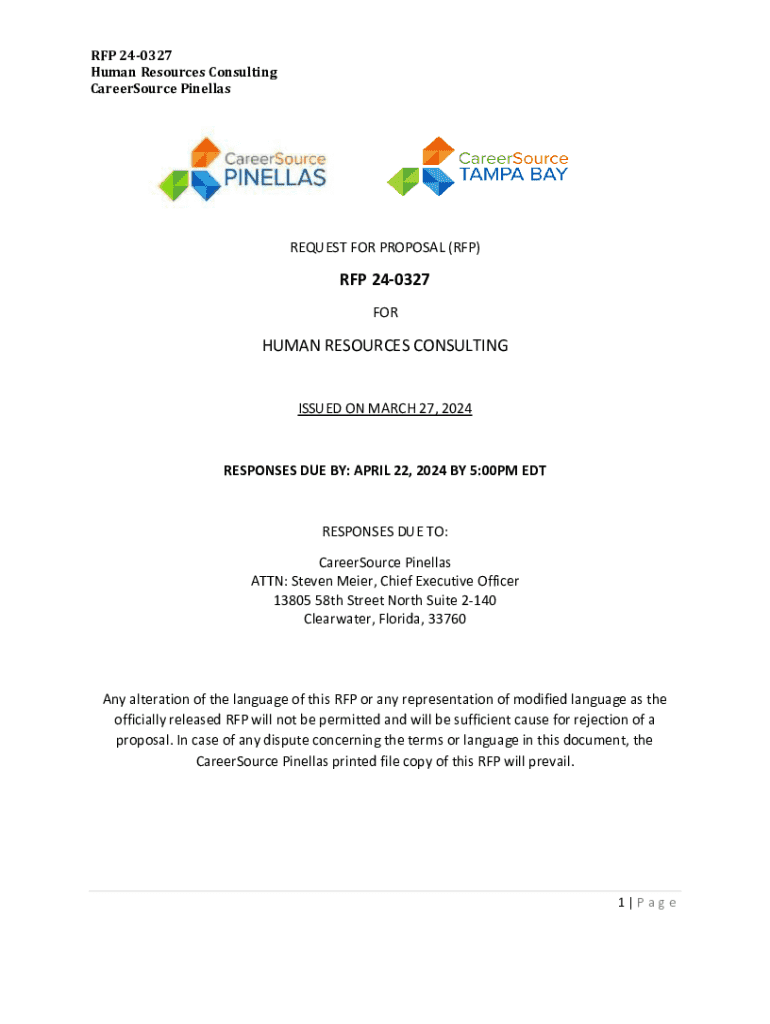 CareerSource PinellasREQUEST FOR PROPOSAL (RFP)RFP 240327