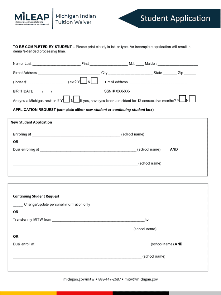 Student Application TO BE COMPLETED BY STUDENT Please print clearly in ink or type. An incomplete application will result in denial/extended processing time. Name: Last ___ First ___ M.I. ___ Maiden