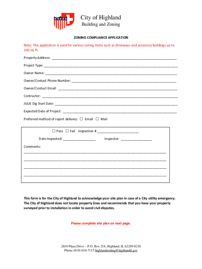City of Highland Building and Zoning COMPLIANCE APPLICATION Note: This application is used for various zoning items such as driveways and accessory buildings up to 200 sq. ft. Property Address: ___