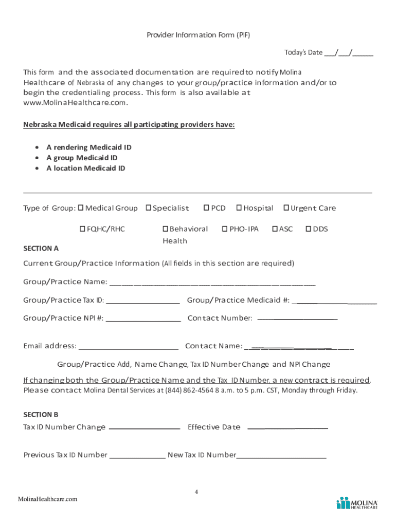 PROVIDER INFORMATION UPDATE FORM (PIF) AND ANY ADDITIONAL