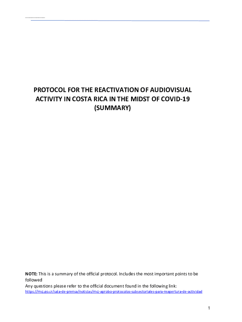___PROTOCOL FOR THE REACTIVATION OF AUDIOVISUAL ACTIVITY IN COSTA RICA IN THE MIDST OF COVID19 (SUMMARY)NOTE: This is a summary of the official protocol. Includes the most important points to be followed