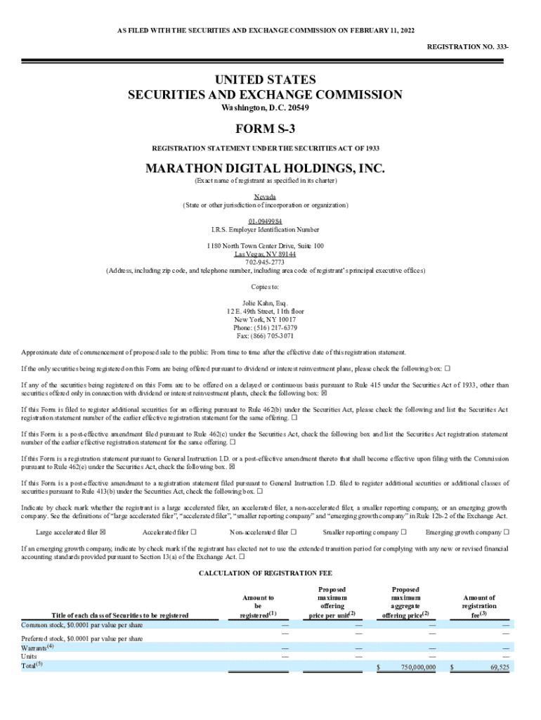 AS FILED WITH THE SECURITIES AND EXCHANGE COMMISSION ON FEBRUARY 11, 2022, REGISTRATION NO. 333UNITED STATES SECURITIES AND EXCHANGE COMMISSION Washington, D.C. 20549FORM S3 REGISTRATION STATEMENT