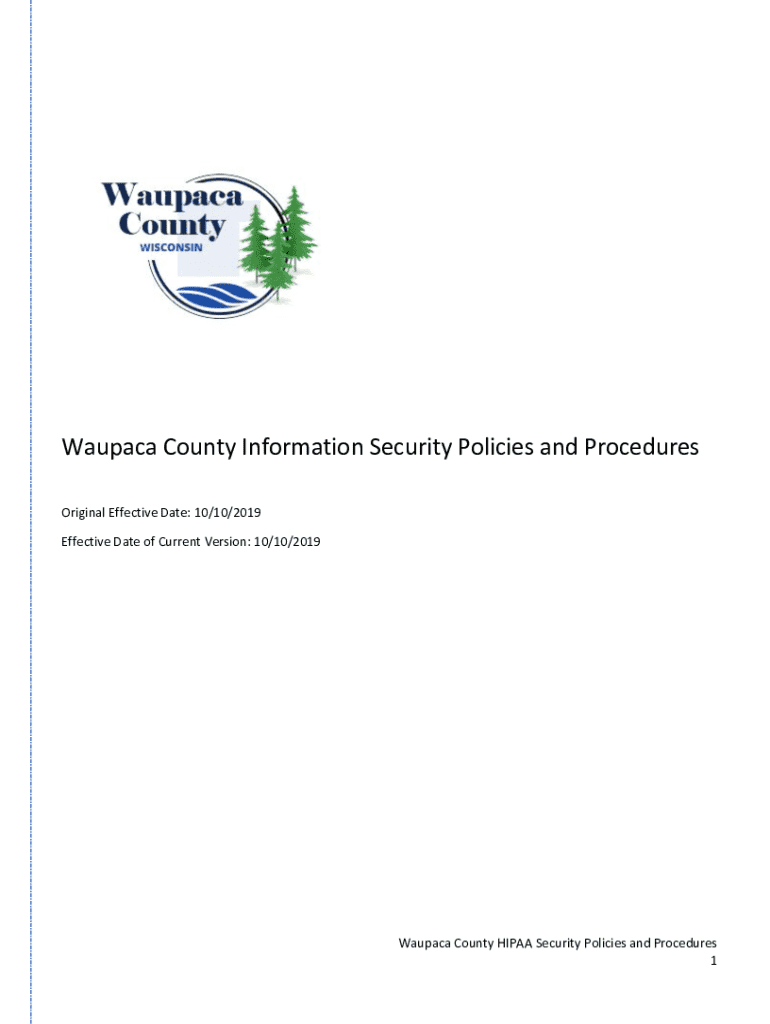 Alpaca County Information Security Policies and Procedures Original Effective Date: 10/10/2019 Effective Date of Current Version: 10/10/2019Waupaca County HIPAA Security Policies and Procedures 1Contents