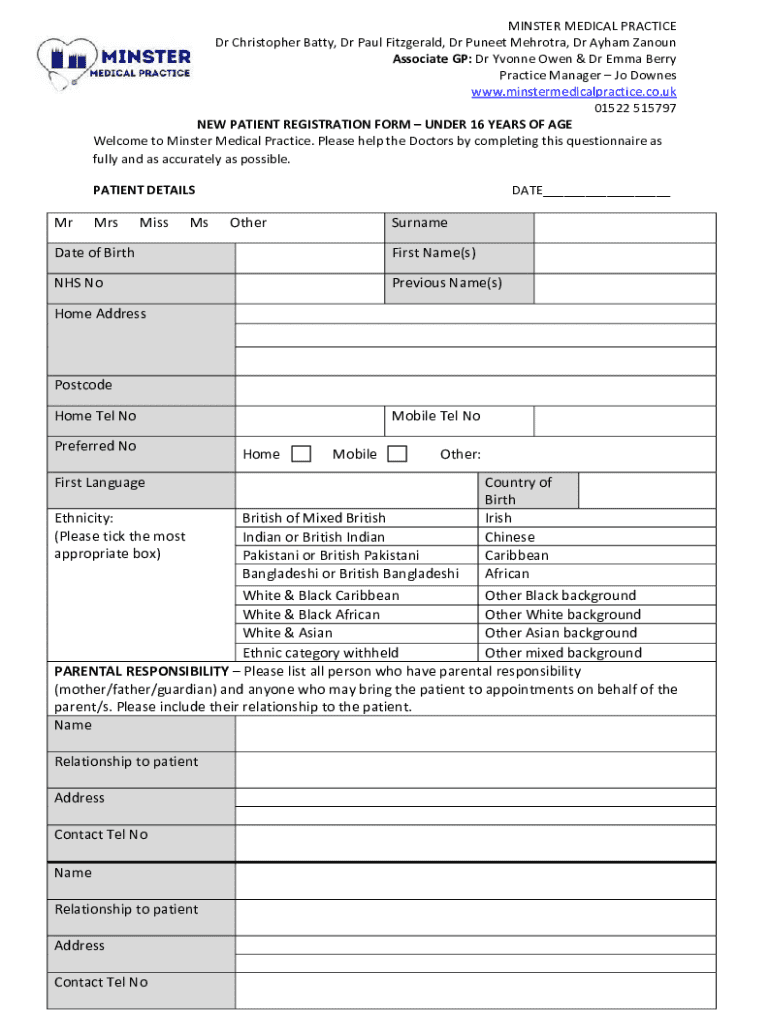Get the free NEW PATIENT REGISTRATION FORM UNDER 16 YEARS OF AGE MAY 2021 Password Protected