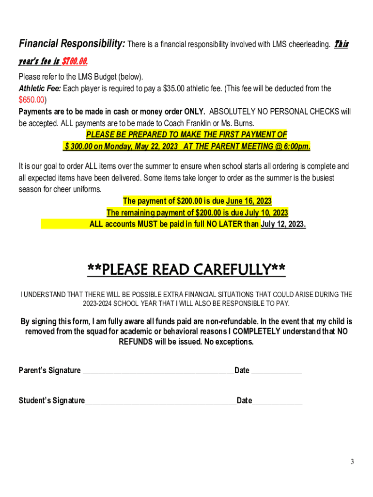 Liberty Middle School Cheer Tryout Packet 20232024 *****Important Dates***** Tryout Clinic: May 1517, 2023 (4:30pm 6:30pm) Mandatory ALL candidates MUST be present for ALL days. Tryouts: May 18, 2023