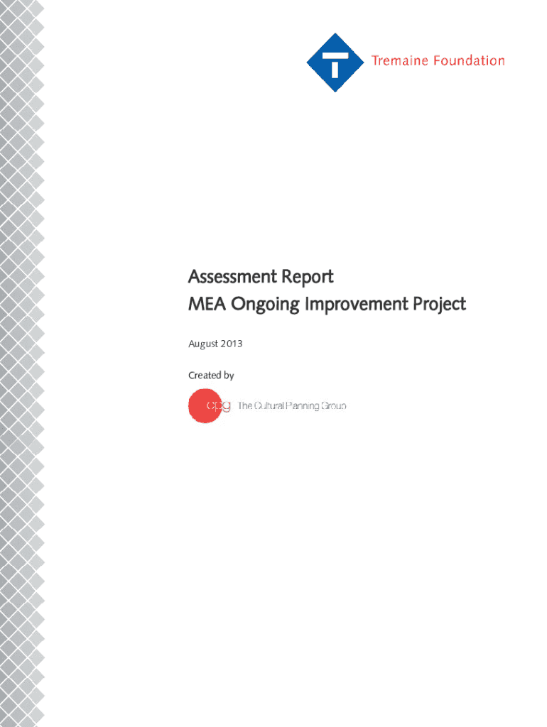 Assessment Report MEA Ongoing Improvement Project August 2013 Created by MEA Ongoing Improvement Reportage Idea in Brief In 2011, the Emily Hall Tremaine Foundation commissioned the development of