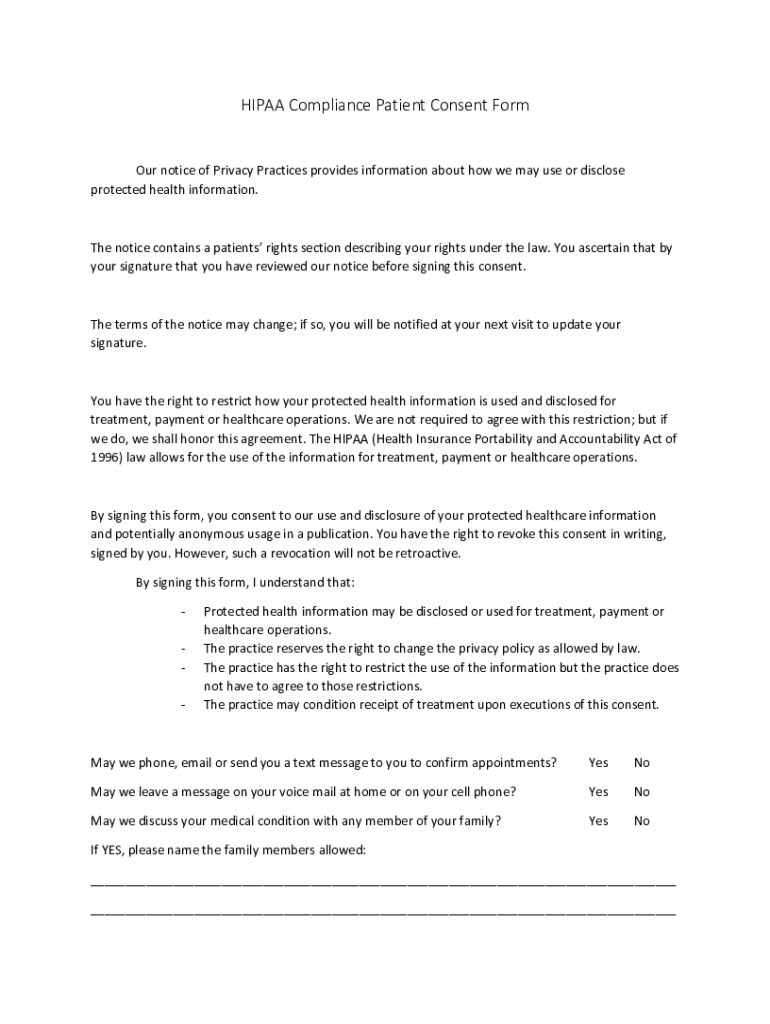 HIPAA Compliance Patient Consent Form Our notice of Privacy Practices provides information about how we may use or disclose protected health information. The notice contains a patients rights section