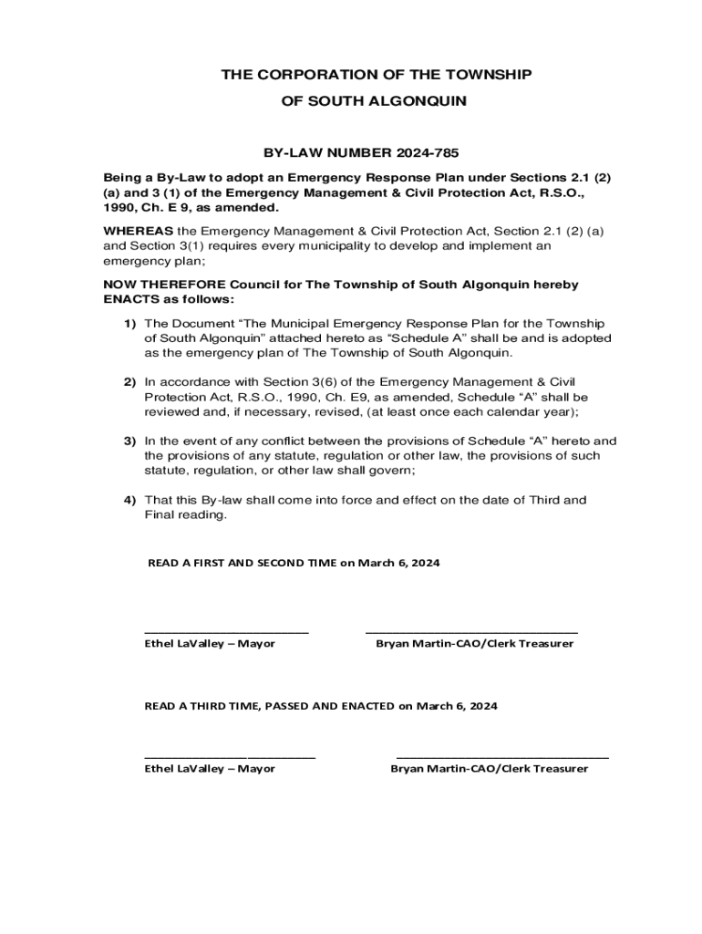 OF SOUTH ALGONQUINBYLAW NUMBER 2024785