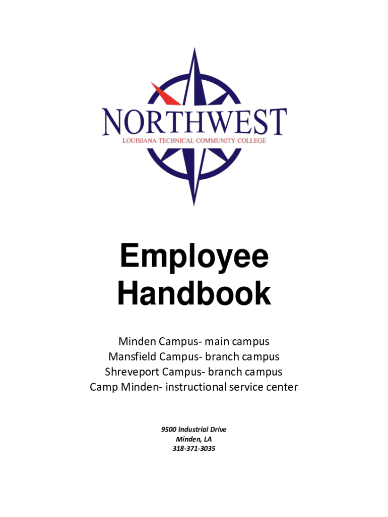 Employee Handbook Minden Campus main campus Mansfield Campus branch campus Shreveport Campus branch campus Camp Minden instructional service center9500 Industrial Drive Minden, LA 3183713035Table