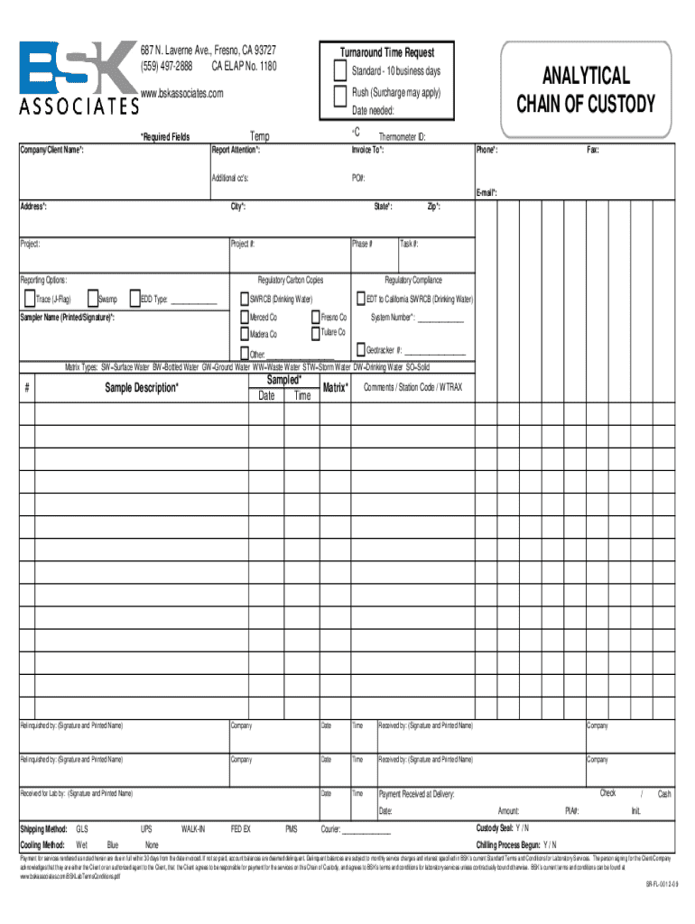 687 N. Laverne Ave., Fresno, CA 93727 (559) 4972888 CAE LAP No. 1180Turnaround Time Request Standard 10 business days.associates.comCTemp×Required Fields Company/Client Name*:ANALYTICAL CHAIN OF