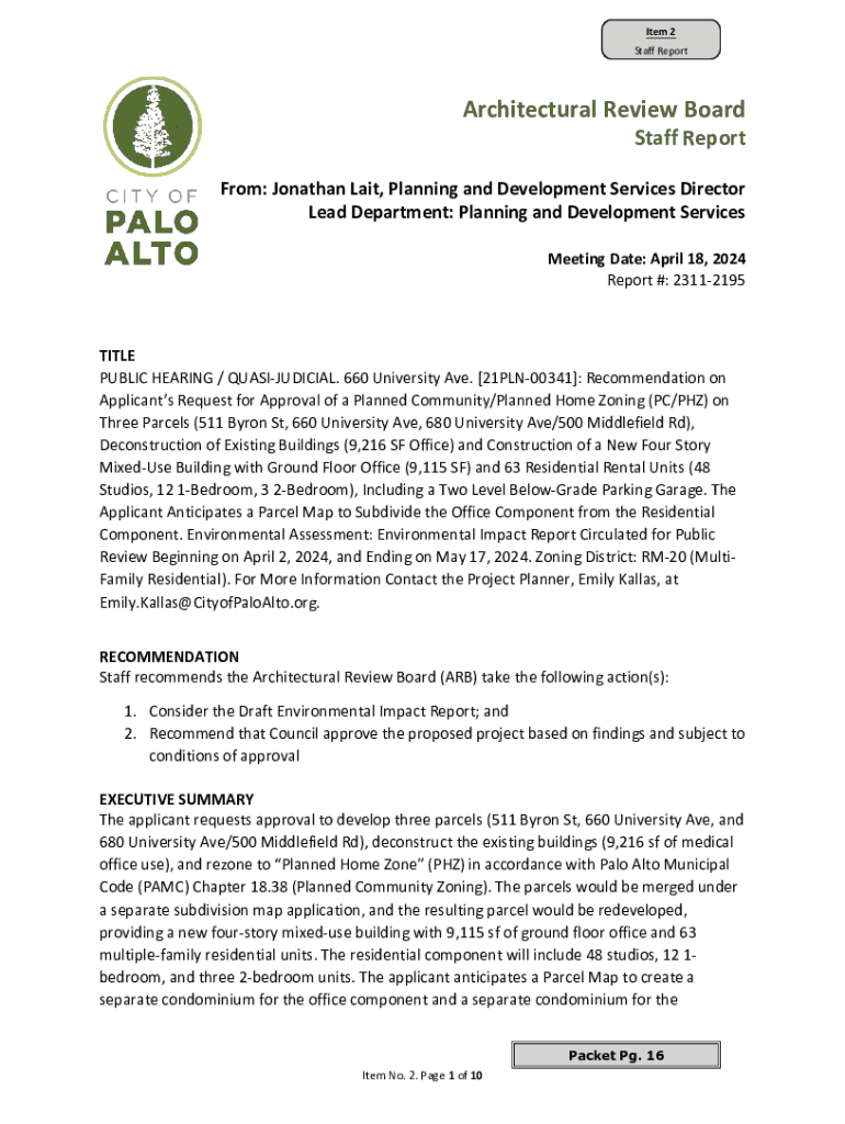 Staff ReportFrom: Jonathan Lait, Planning and Development Services Director