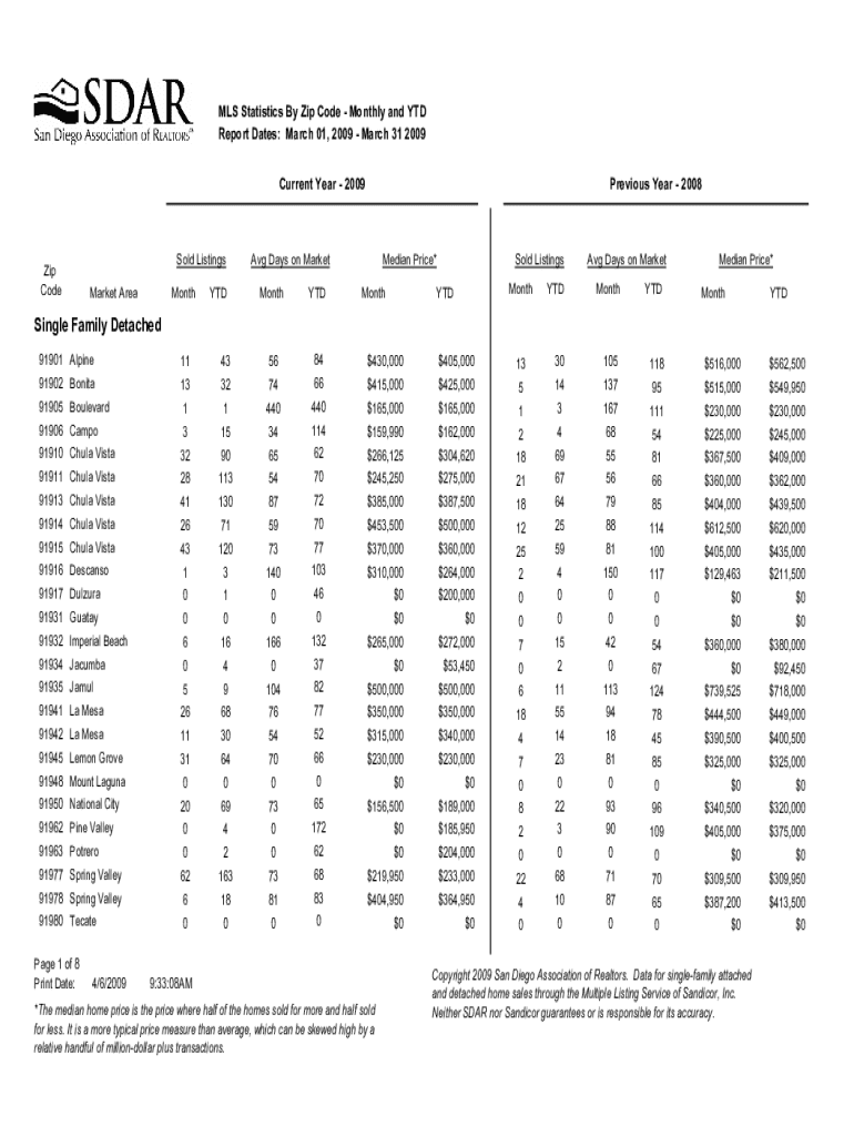 Market AreaMonthYTDPrevious Year 2008Avg Days on Market