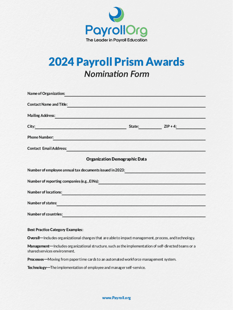 Get the free Nominate Your Organization for a Payroll Prism Award
