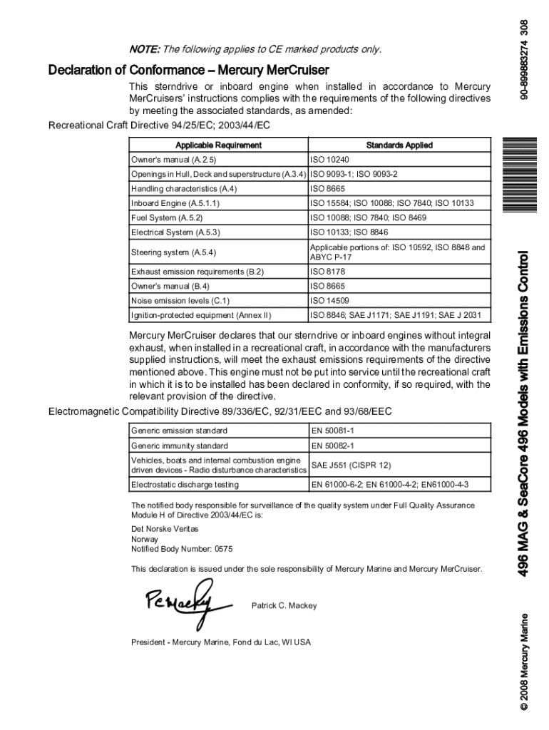 Get the free Gasoline Engines - Sterndrive MPI Models Declaration of ...