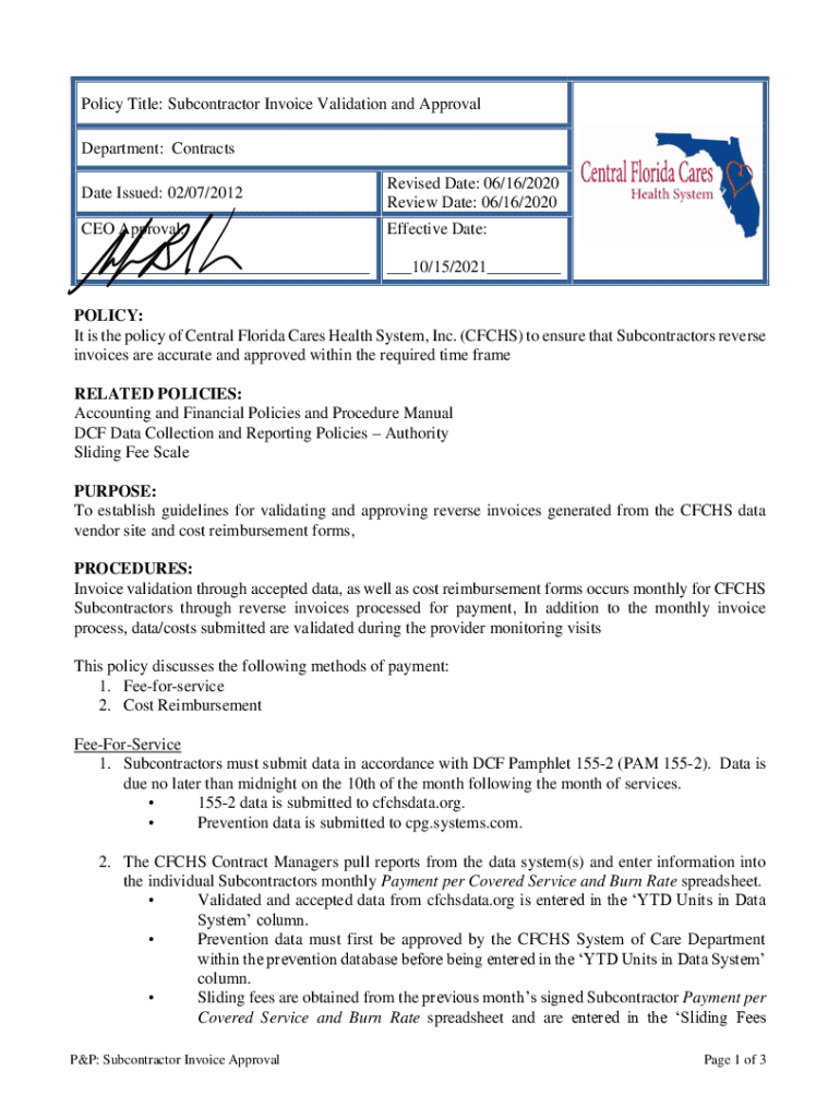 Get the free Policy Title: Subcontractor Invoice Validation and Approval