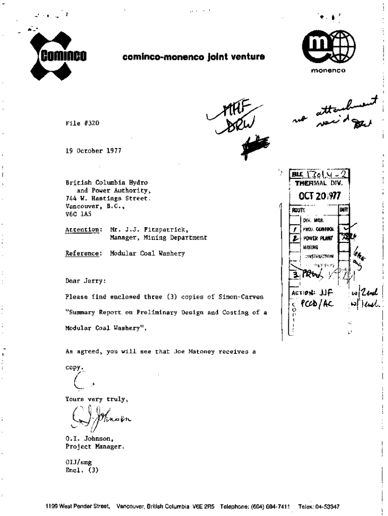 I ×.(2;.commcocomincomonencocFile#32019 October 1977joint venture AP.monencoBritish Columbia Hydro and Power Authority, 744 w. Hastings street. Vancouver, B.C., V6C lA5 Attention:Mr. J.J. Fitzpatrick,