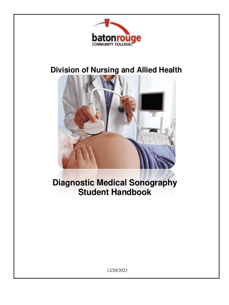 Division of Nursing and Allied HealthDiagnostic Medical Sonography Student Handbook12/20/2023BATON ROUGE COMMUNITY COLLEGE DIAGNOSTIC MEDICAL SONOGRAPHY ASSOCIATE OF SCIENCE PROGRAMINTRODUCTION The