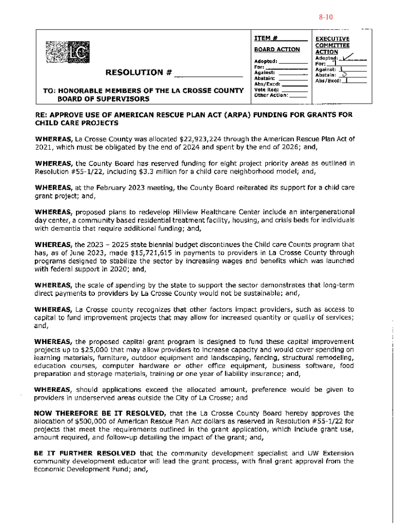 810Childcare Capital Grant ApplicationDeadline: September 29, 2023, Mission La Crosse County seeks to partner with local childcare providers to improve access and availability of childcare within