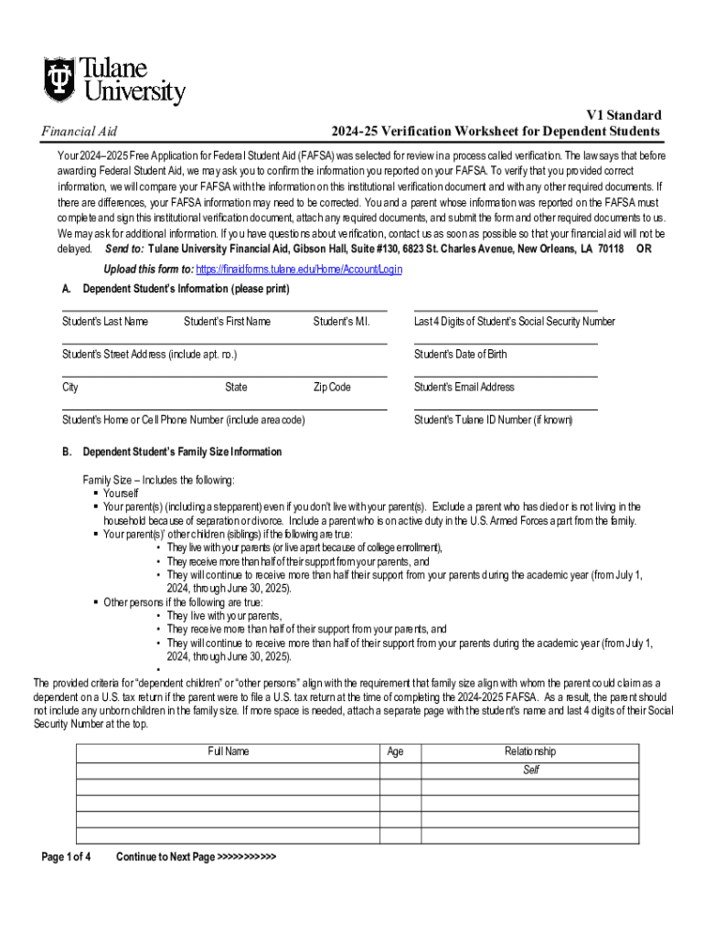 Get the free Financial Aid V1 Standard 2024-25 Verification Worksheet for ... - financialaid tulane